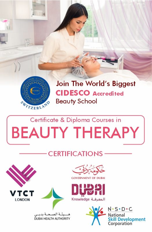 • Globally recognized certifications from CIDESCO (Swiss), VTCT (U.K.) , DHA (Dubai Health Authority) and KHDA (Knowledge and Human Development Authority).